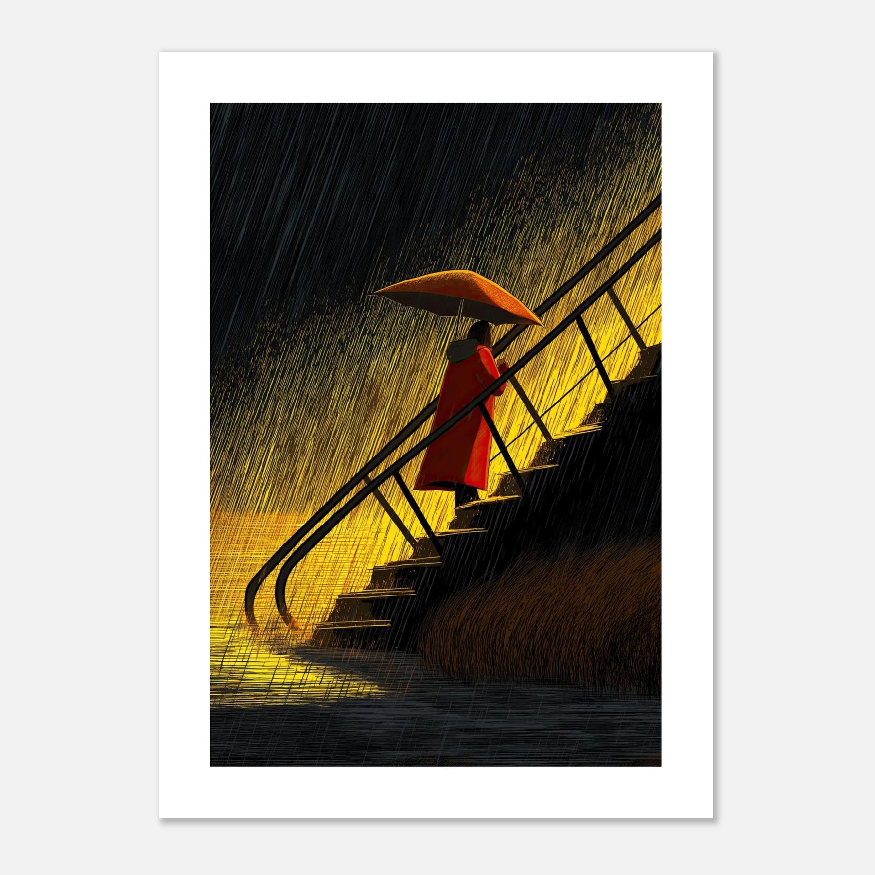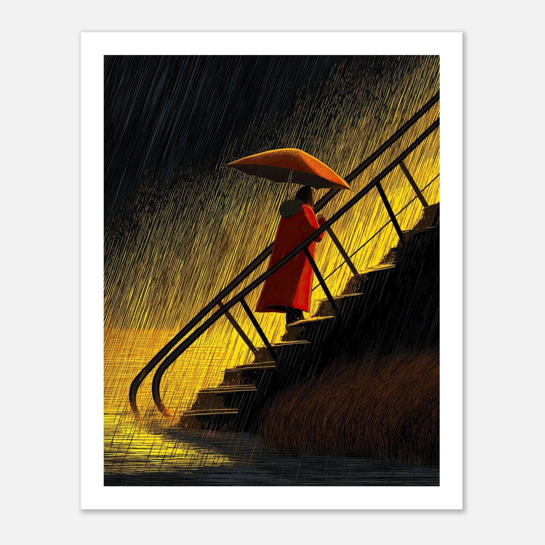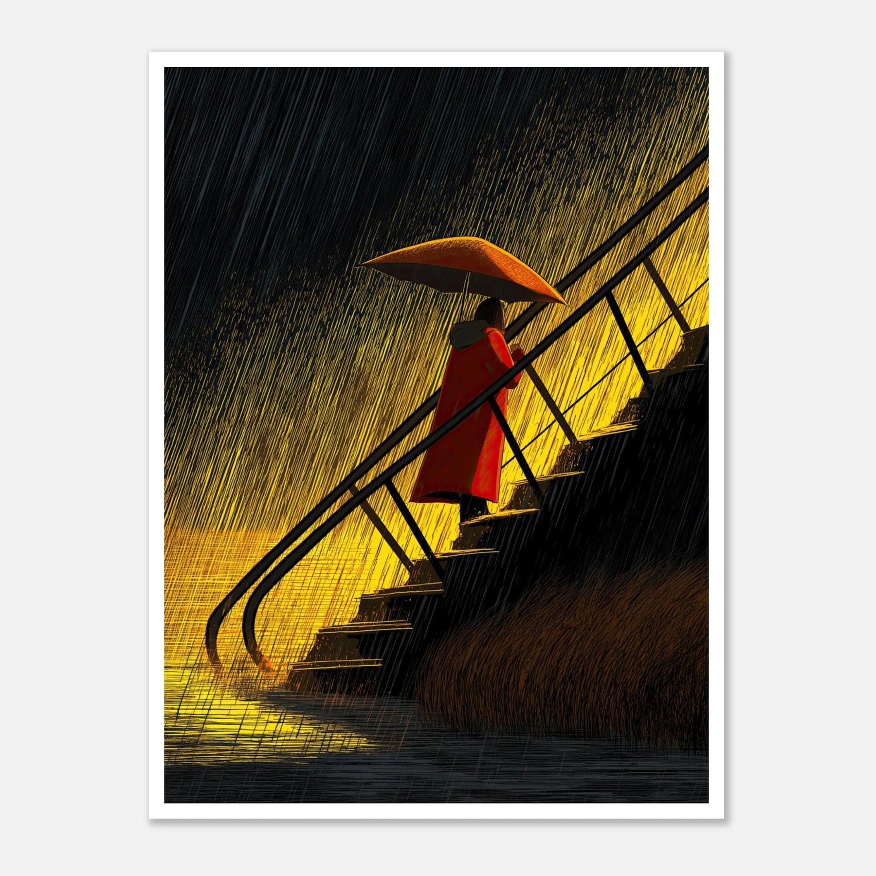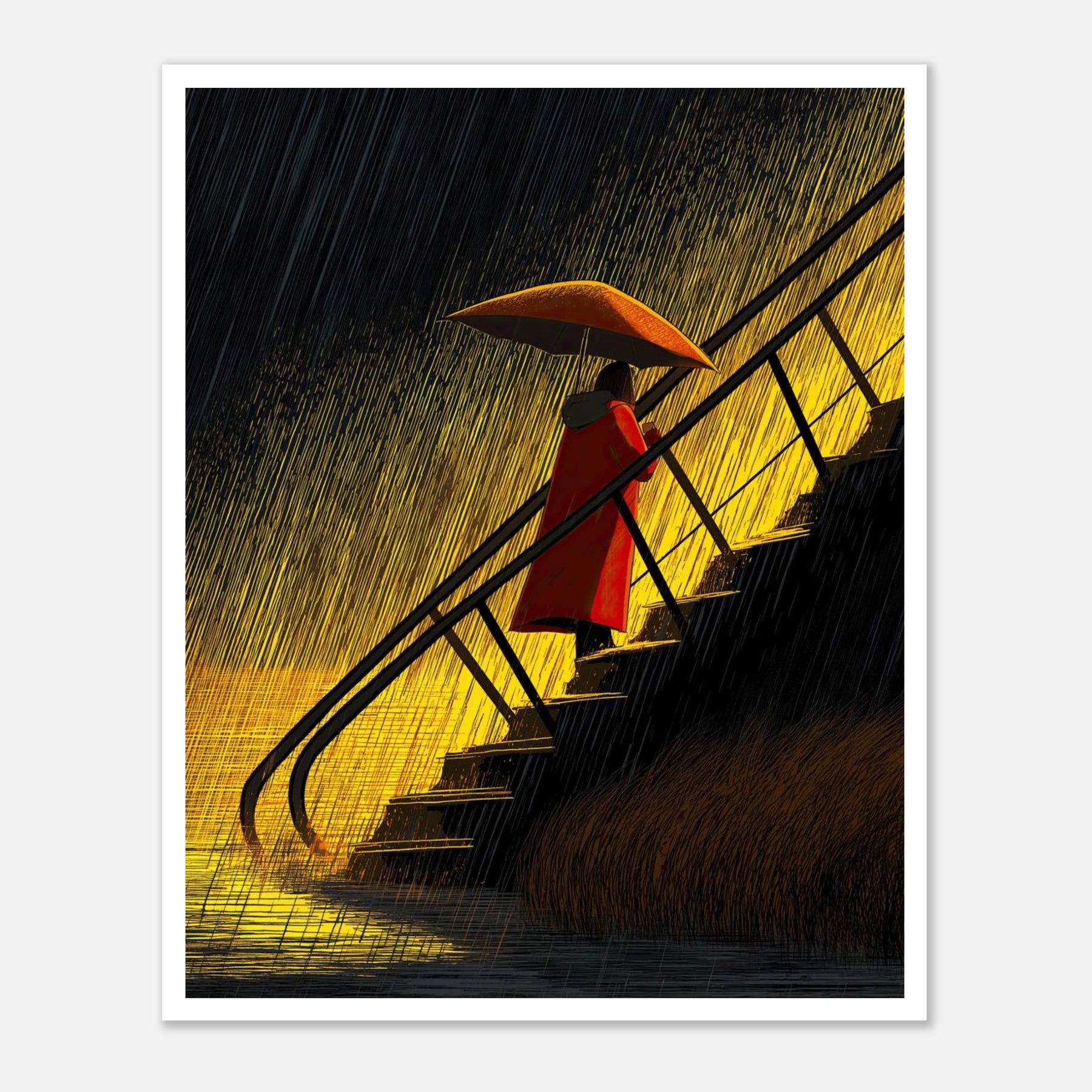Nobody can walk the stairs for you, especially when life is pouring rain. But you can carry your own umbrella and find the warmth even in a downpour. This piece is pure self-respect. It’s a reminder that moving up is hard work, but you already have everything you need to protect your energy and weather the storm.